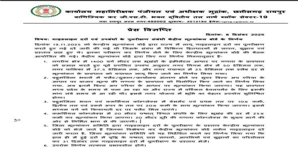 महानिरीक्षक के द्वारा जारी अधिकृत बयान के अनुसार 19 नवंबर को केन्द्रीय मूल्यांकन बोर्ड द्वारा राज्य में लागू गाइडलाइन दरों का पुनरीक्षण करते हुए नई दरें जारी की गई थी जिसके संबंध में विभिन्न हितधारकों से ज्ञापन, सुझाव एवं प्रस्ताव प्राप्त हुए थे। इनका परीक्षण कर निर्णय लेने के लिए केन्द्रीय मूल्यांकन बोर्ड की बैठक आयोजित की गई।
