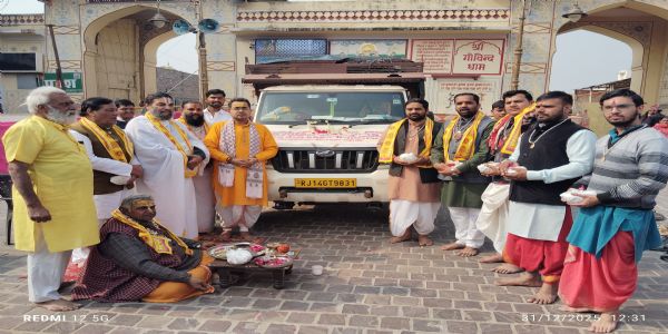 जयपुर, 31 दिसंबर (हि.स.)। तीर्थराज प्रयाग की पावन धरा पर आयोजित होने वाले माघ मेले में छोटी काशी के आराध्य देव के नाम से गोविंद धाम शिविर लगाया जाएगा। शिविर का शुभारंभ 3 जनवरी से होगा और यह एक माह तक संचालित रहेगा। इसी क्रम में बुधवार को गोविंद धाम से संत-महंतों के सानिध्य में पूजा-अर्चना कर खाद्य सामग्री प्रयागराज के लिए रवाना की गई।