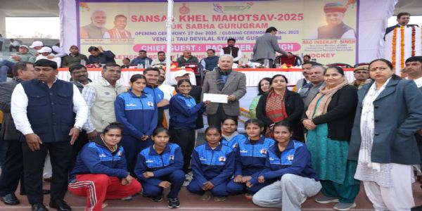 गुरुग्राम, 29 दिसंबर (हि.स.)। केन्द्रीय मंत्री राव इंद्रजीत सिंह ने सोमवार को गुरुग्राम में ‘सांसद खेल महोत्सव 2025’ के समापन समारोह को संबोधित करते हुए कहा कि प्रधानमंत्री नरेन्द्र मोदी ने खेलों को जनआंदोलन बनाने की दिशा में सांसद खेल महोत्सव की परिकल्पना प्रस्तुत की थी। उन्होंने कहा कि आज यह देशभर में खेल संस्कृति को मजबूत करने का माध्यम बन चुका है। उन्होंने कहा कि इस आयोजन ने न केवल छिपी हुई खेल प्रतिभाओं को आगे आने का अवसर दिया है, बल्कि खिलाड़ियों को निरंतर अभ्यास और प्रतिस्पर्धा के लिए प्रेरित किया है। कार्यक्रम में हॉकी इंडिया के अध्यक्ष, भारतीय हॉकी टीम के पूर्व कप्तान, पद्म श्री एवं राज्यसभा सांसद दिलीप तिर्की, पटौदी की विधायक बिमला चौधरी, सोहना के विधायक तेजपाल तंवर सहित अनेक गणमान्य व्यक्ति उपस्थित थे।