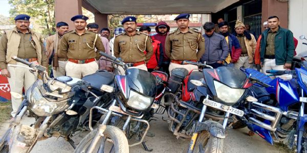 एसपी स्वर्ण प्रभात के निर्देश चलाये जा रहे विशेष अभियान के दौरान पुलिस को बड़ी सफलता मिली है।पुलिस ने अंतरजिला बाइक चोर गिरोह के 8 सदस्यो को पकड़ा है। उनके पास से चोरी की 4 बाइक जब्त की गई है।