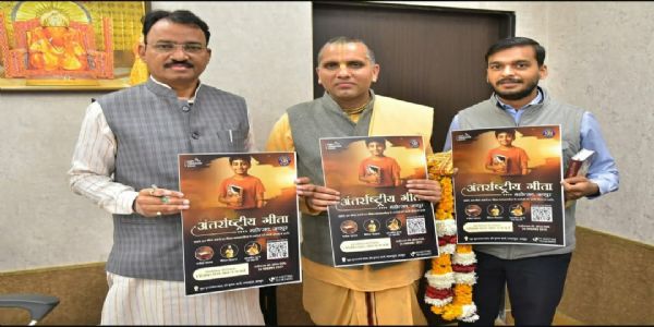 जयपुर, 28 नवंबर (हि.स.)। गुप्त वृन्दावन धाम में एक दिसंबर को गीता जयंती के दिन भव्य आयोजन किया जा रहा है। गीता जयंती के पावन पर्व पर मंदिर में अंतरराष्ट्रीय गीता महोत्सव आयोजित किया जाएगा। जिसका पोस्टर विमोचन उपमुख्यमंत्री प्रेमचंद बैरवा ने किया।