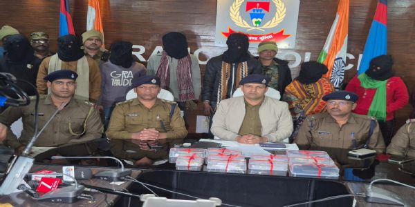 टीम को मिली गुप्त सूचना के आधार पर शांतिनगर, तिरिल, रोड नं-10 से बाबला राम के घर पर विधिवत छापामारी किया गया। छापामारी के क्रम में तीन महिला पांच व्यक्तियों को पकड़ा गया। उन्हाेंने बताया कि गिरफ्तार आरोपितों में अम्बर कुमार राम उर्फ टमन उर्फ तपन, बाबला राम, मुन्नी देवी, दिव्या कुमारी, पियुष कुमार, समीर तिर्की,अमन कुमार शामिल है। पकड़ाये व्यक्ति का विधिवत तलाशी के क्रम में अन्य सामानों के साथ कुल 85.71 ग्राम ब्राउन शुगर पकड़ा गया।