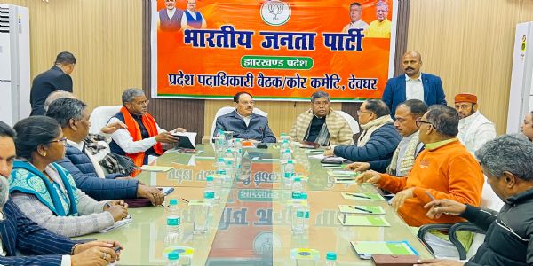 देवघर के सर्किट हाउस में कार्यकर्ताओं की भीड़ देखने को मिल रही है। कड़ी सुरक्षा के बीच सर्किट हाउस पहुंचने के बाद राष्ट्रीय अध्यक्ष जेपी नड्डा ने पार्टी के पदाधिकारियों और प्रदेश भाजपा कोर कमिटी के साथ बैठक की। बैठक में झारखंड की राजनीतिक, पार्टी की मजबूती सहित अन्य विषयों पर चर्चा हुई। इस दौरान उन्होंने प्रदेश कोर कमिटी को कई टास्क भी दिये।