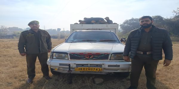 जम्मू पुलिस ने घरोटा क्षेत्र में अवैध खैर की लकड़ी की तस्करी में शामिल टाटा मोबाइल किया जब्त