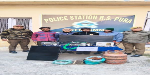 जम्मू आरएसपूरा पुलिस स्टेशन ने एक सुनियोजित चोरी में शामिल चार चोरों को गिरफ्तार करके चोरी के मामले को सुलझाने में महत्वपूर्ण सफलता हासिल की है। पुलिस की त्वरित और प्रभावी कार्रवाई के परिणामस्वरूप लगभग 40000 की चोरी की संपत्ति सफलतापूर्वक बरामद कर ली गई है। यह मामला तरविंदर सिंह द्वारा 10.01.2026 को दर्ज कराई गई लिखित शिकायत से शुरू हुआ जिसमें उन्होंने कोटली शाह दौला स्थित अपने आवासीय भवन में हुई चोरी की सूचना दी थी।