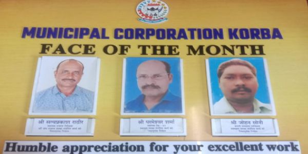 कोरबा, 10 दिसम्बर (हि.स.)। नगर पालिक निगम कोरबा के सहायक राजस्व निरीक्षक सत्य प्रकाश राठौर, सहायक ग्रेड lll परमेश्वर शर्मा एवं स्वच्छता निरीक्षक जोहन सोनी को दिसम्बर माह का ’’ फेस आफ द मंथ ’’ चुना गया है। महापौर संजूदेवी राजपूत व आयुक्त आशुतोष पाण्डेय ने ’’ फेस आफ द मंथ ’’ चुने गए इन कर्मचारियों को बधाई दी है तथा कार्य के प्रति उनकी निष्ठा की सराहना की है।
