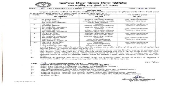 लखनऊ, 06 जनवरी (हि.स.)। मध्यांचल विद्युत वितरण निगम लिमिटेड (एमवीवीएनएल) ने प्रशासनिक आवश्यकता के तहत एक महत्वपूर्ण कार्यालय आदेश जारी करते हुए विभिन्न इकाइयों में तैनात छह कार्यकारी सहायकों को स्थानांतरित किया है। इन सभी को मुख्य अभियंता (वितरण) देवीपाटन क्षेत्र गोंडा में कार्य के लिए नवीन तैनाती की गई है।