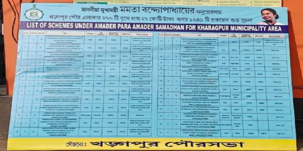 कार्यक्रम के दौरान खड़गपुर नगर के कुल 35 वार्डों में संचालित एवं प्रस्तावित जनहितकारी विकास योजनाओं की विस्तृत जानकारी बैनर और पोस्टर के माध्यम से आम जनता के समक्ष प्रस्तुत की गई। बैनरों में सड़क निर्माण, नाली एवं जलनिकासी व्यवस्था, पेयजल आपूर्ति, स्ट्रीट लाइट, नगर सौंदर्यीकरण, स्वास्थ्य सेवाएं तथा अन्य नागरिक सुविधाओं से जुड़े विकास कार्यों को प्रमुखता से दर्शाया गया।