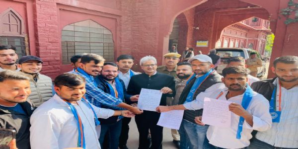 ज्ञापन देने के समय एनएसयूआई की विवि इकाई अध्यक्ष झुंझार सिंह चौधरी, छात्रनेता एमएल चौधरी, ऋषि गहलोत, राकेश खोजा, भागीरथ देवासी, राजवीर पटेल, विक्रम बिश्नोई, करण जांगिड़, बृजेश प्रजापत, लक्ष्य जांगिड़, मोहित मेहरा, नवरत्न गहलोत, जसराज चौधरी आदि उपस्थित रहे।