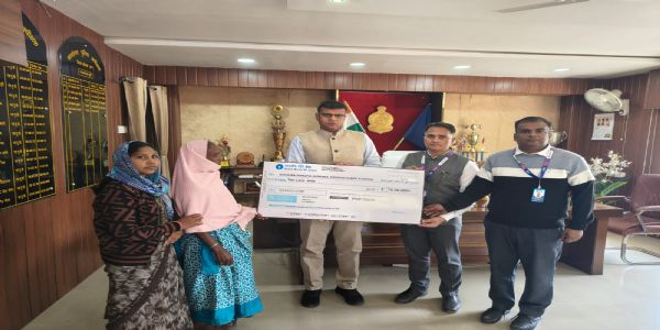 इसी योजना के तहत पुलिस अधीक्षक कार्यालय में पदस्थ आरक्षक कृष्ण कुमार खड़िया (आकस्मिक निधन दिनांक 28 सितंबर 2025) एवं आरक्षक सुरेन्द्र लहरे (आकस्मिक निधन दिनांक 7 सितंबर 2025) के परिजनों को ₹10-10 लाख रुपये की बीमा राशि प्रदान की गई। बीमा राशि का वितरण पुलिस अधीक्षक कोरबा सिद्धार्थ तिवारी, भा.पु.से., भारतीय स्टेट बैंक के मुख्य प्रबंधक मृत्युंजय वर्मा एवं आईटीआई शाखा कोरबा के मुख्य प्रबंधक रामेश्वर कुमार की गरिमामयी उपस्थिति में किया गया।