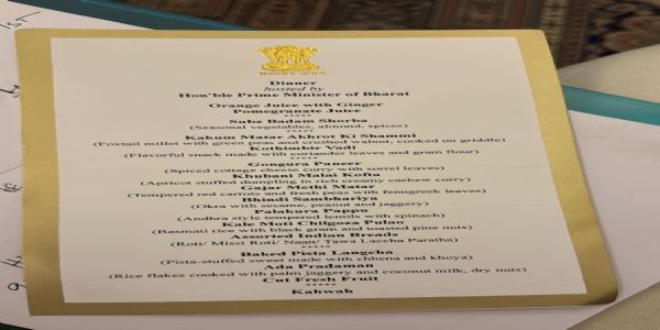 सूत्रों के मुताबिक भोजन के मेन्यू में हर राज्य के व्यंजन शामिल थे। यानी जम्मू-कश्मीर से लेकर केरल तक, सभी राज्यों के व्यंजन सांसदों को परोसे गए। आंध्रप्रदेश का पलककुरा पप्पू, काले मोती चिलगोजा पुलाव, भिंडी सांवरिया भी मेन्यू में शामिल था। महाराष्ट्र की मूंगफली की चटनी, विभिन्न प्रकार के चावल, ज्वार की रोटी भोजन की विशेषताएं थीं। एक तरह से कहा जा सकता है कि भोजन में देश के हर राज्य से व्यंजन शामिल किए गए थे जिसके माध्यम से सांसदों को विभिन्नता में एकता का संदेश दिया।
