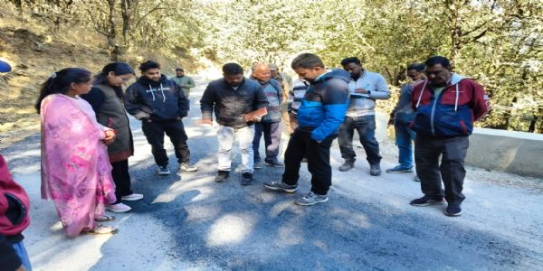 शिकायत के बाद प्रशासन की टीम ने डामरीकरण कार्य का किया निरीक्षण