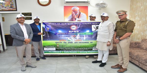 जयपुर, 20 दिसंबर (हि.स.)। राजस्थान सरकार के “2 साल नव उत्थान नई पहचान, बढ़ता राजस्थान हमारा राजस्थान” अभियान के तहत सड़क सुरक्षा को लेकर चल रहे प्रयासों की कड़ी में राजस्थान परिवहन निरीक्षक संघ (आरपीएनएस) की ओर से आयोजित आरपीएनएस फ्रेंडली क्रिकेट मैच-2025 के बैनर का शनिवार को अनावरण किया गया। बैनर का अनावरण उपमुख्यमंत्री डॉ. प्रेमचंद बैरवा ने सिविल लाइंस स्थित अपने आवास पर किया।