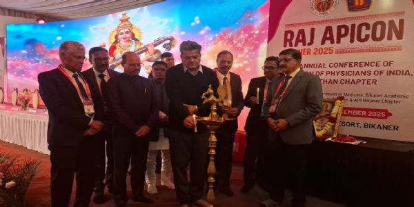 बीकानेर, 20 दिसंबर (हि.स.)। एसोसिएशन ऑफ फिजिशियंस ऑफ इंडिया (एपीआई) के राजस्थान चैप्टर और सरदार पटेल मेडिकल कॉलेज के मेडिसिन विभाग के संयुक्त तत्वावधान में 37वीं राज्य स्तरीय कॉन्फ्रेंस ‘राजएपिकॉन-2025’ का शनिवार को गणेशम रिसॉर्ट में भव्य शुभारंभ हुआ। खाद्य एवं नागरिक आपूर्ति मंत्री सुमित गोदारा ने मां सरस्वती के चित्र के समक्ष दीप प्रज्ज्वलित कर सम्मेलन का उद्घाटन किया।