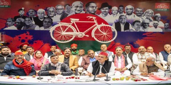 पार्टी नेताओं और कार्यकर्ताओं को सम्बोधित करते हुए अखिलेश यादव ने कहा कि वर्ष 2027 में भाजपा की नकारात्मक सरकार को हटाना है। सत्ता से बाहर करना है। इस सरकार में अन्याय, अत्याचार, महंगाई, बेरोजगारी, भ्रष्टाचार चरम पर है। जनता त्रस्त है। 2027 में भाजपा सरकार का हटना तय है। उन्होंने कहा कि भारतीय जनता पार्टी (भाजपा) कमजोर हो चुकी है। भाजपा सरकार ने कानून व्यवस्था का सत्यानाश कर दिया है। साइबर क्राइम और फ्राड लगातार बढ़ता जा रहा है। भाजपा ने डायल 100 और 1090 सेवा को खराब कर दिया। शिक्षा, स्वास्थ्य व्यवस्था को बर्बाद कर दिया है। उन्होंने कहा कि भाजपा सबसे बड़ी भूमाफिया पार्टी है। भाजपा सरकार के संरक्षण में प्रदेश के जिलों-जिलों में गरीबों और सरकारी जमीनों पर अवैध कब्जा हो रहे है। ये लोग अरावली पहाड़ को भी नहीं छोड़ना चाहते है। इनकी नीयत अरावली पर कब्जे और लूट की है। भाजपा पहाड़ को भी खा लेना चाहती है।