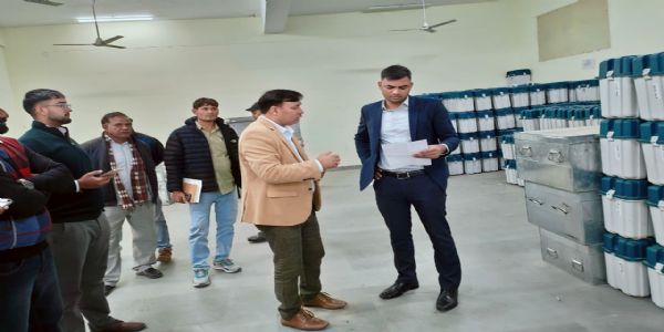 जींद , 12 दिसंबर (हि.स.)। भारत निर्वाचन आयोग की हिदायतों के अनुसार एडीसी विवेक आर्य ने शुक्रवार को इलेक्ट्रॉनिक वोटिंग मशीनों (ईवीएम) और मतदाता सत्यापित पेपर ऑडिट ट्रेल (वीवीपैट) मशीनों के लिए बनाए गए स्ट्रांग रूम का निरीक्षण किया। एडीसी विवेक आर्य ने चुनाव आयोग के निर्देशों के अनुसार ईवीएम और वीवीपैट मशीनों को संग्रहित करने की जांच की जहां ईवीएम, सीयू, बीयू वीवीपैट सहित चुनाव सामग्री को स्ट्रांग रूम में पुलिस की कड़ी सुरक्षा व्यवस्था में सुरक्षित रखा गया है। उन्होंने कहा कि स्ट्रांग रूम की सुरक्षा को ध्यान में रखते हुए सीसी टीवी कैमरों से आवागमन की हर गतिविधि पर नजर रखी जा रही है। लॉगबुक को जिला चुनाव अधिकारी की देखरेख में रखा जाता है। वहीं निरीक्षण को मौके पर ही भारत निर्वाचन आयोग एप पर ऑनलाइन प्लेटफार्म प्रणाली के जरिये अपलोड किया गया है। इस अवसर पर नायब तहसीलदार प्रदीप कुमार, आम आदमी पार्टी से वजीर ढांडा, कांग्रेस पार्टी से ईशान खान, बसपा से राकेश उपस्थित थे।