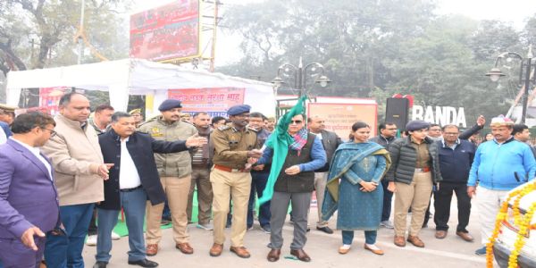 बांदा, 01 जनवरी (हि.स.)। उत्तर प्रदेश के जनपद बांदा में सड़क दुर्घटनाओं में कमी लाने के लिए 01 जनवरी से 31 जनवरी तक आयोजित किए जा रहे राष्ट्रीय सड़क सुरक्षा माह का भव्य शुभारंभ गुरुवार को महाराणा प्रताप चौक, बाँदा में किया गया। कार्यक्रम का आयोजन परिवहन विभाग द्वारा किया गया।