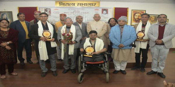 लखनऊ, 05 जनवरी (हि.स.)। उत्तर प्रदेश हिंदी संस्थान के निराला सभागार में समाजसेवी शिक्षाविद् एवं पत्रकार पंडित जगदीश नारायण मिश्र की 22वीं पुण्यतिथि के अवसर पर आज आदि नगरी लखनपुरी विषयक व्याख्यान और काव्य गोष्ठी का आयोजन किया गया। इस अवसर पर मीडिया व सामाजिक क्षेत्र में विशिष्ट योगदान करने वाले वरिष्ठ वैज्ञानिक और विज्ञान संचारक डॉक्टर चंद्र मोहन नौटियाल तथा क्षेत्रीय समाचार एकांश, आकाशवाणी लखनऊ के प्रमुख सूरज तिवारी को 'प्रेरक सम्मान 2026' तथा वरिष्ठ चिकित्सक डॉक्टर अभिषेक कुमार मिश्रा और वरिष्ठ मीडिया कर्मी प्रणव अग्निहोत्री को 'प्रेरक युवा सम्मान 2026' से अलंकृत किया गया।