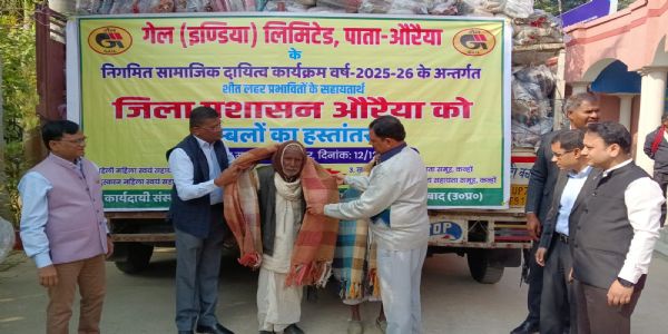 औरैया, 12 दिसम्बर (हि. स.)। जिलाधिकारी डॉ. इंद्रमणि त्रिपाठी ने सर्दी काे ध्यान में रखते हुए शुक्रवार काे कलेक्ट्रेट परिसर में असहाय व निराश्रित व्यक्तियों को कम्बल वितरित कर जिले में कम्बल वितरण अभियान की शुरुआत की। यह कम्बल गेल (इंडिया) लिमिटेड पाता द्वारा सीएसआर कार्यक्रम 2025-26 के तहत उपलब्ध कराए गए हैं। कुल एक हजार कम्बल प्राप्त हुए हैं, जिनमें से कुछ का सांकेतिक वितरण स्वयं जिलाधिकारी ने किया।