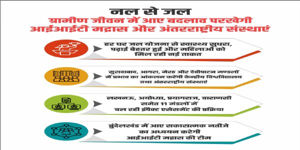 नमामि गंगे एवं उत्तर प्रदेश जल जीवन मिशन के अपर मुख्य सचिव अनुराग श्रीवास्तव ने बताया कि पाइप से पेयजल योजना के जरिए शुद्ध पानी मिलने से ग्रामीण क्षेत्रों में स्वास्थ्य स्तर बेहतर हुआ है। बच्चों की शिक्षा में निरंतरता आई है और रोजगार के लिए होने वाला प्रवासन घटा है। सबसे अहम महिलाओं को आत्मनिर्भर बनने का अवसर मिला है। आईआईटी मद्रास की टीम इन सभी प्रभावों का धरातल पर आकलन करेगी। इसके लिए राज्य पेयजल एवं स्वच्छता मिशन की ओर से अनुरोध किया गया है।