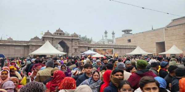 देश- दुनिया के लिए आस्था का सबसे बड़ा केंद्र बनी राम की नगरी अयोध्या में आज नए साल के पहले दिन भक्तों के सैलाब को देखते हुए प्रशासन पूरी तरह से अलर्ट है। वैसे तो पिछले कई दिनों से यहां लाखों भक्त आ रहे हैं और वे नित्य राम लला के दर्शन कर रहे हैं। व्यवस्था बनाए रखने के लिए प्रशासन भक्तों की भीड़ को नियंत्रित कर रहा है, ताकि किसी भी तरह की अनहोनी से बचा जा सके और श्रद्धालुओं को रामलला के दर्शनों में दिक़्क़त न हो। अयोध्या में उमड़ी भीड़ गवाही दे रही है कि नए साल की शुरुआत अपने आराध्य प्रभु श्री राम के दर्शन से करना चाहते हैं।