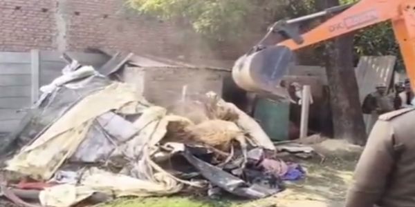 सरकारी जमीन पर अवैध निर्माण खाली कराने के दौरान विरोध, पुलिस की मौजूदगी में चला बुलडोजर