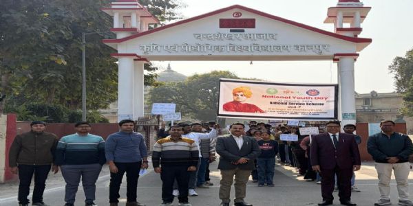 कानपुर, 12 जनवरी (हि.स.)। चंद्रशेखर आज़ाद कृषि एवं प्रौद्योगिकी विश्वविद्यालय (सीएसए) कानपुर के उद्यान महाविद्यालय, सामुदायिक विज्ञान महाविद्यालय, कृषि अभियंत्रण महाविद्यालय सहित अन्य महाविद्यालय में सोमवार को एनएसएस इकाई-7, एनएसएस इकाई-3 के तत्वावधान में राष्ट्रीय युवा दिवस अत्यंत उत्साह, अनुशासन एवं राष्ट्रभक्ति की भावना के साथ मनाया गया। यह कार्यक्रम युवाओं को स्वामी विवेकानंद के विचारों से प्रेरित कर राष्ट्र निर्माण एवं स्वदेशी चेतना से जोड़ने के उद्देश्य से आयोजित किया गया।
