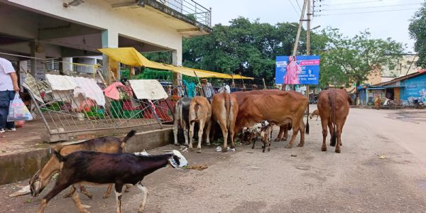 धमतरी : मवेशियों एवं कुत्तों से इतवारी बाजार के सब्जी व्यवसायी परेशान