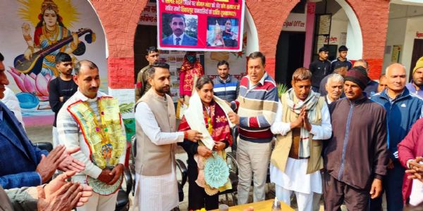 गांव के राजकीय वरिष्ठ माध्यमिक विद्यालय में सम्मान समारोह का आयोजन कर सम्मानित किया