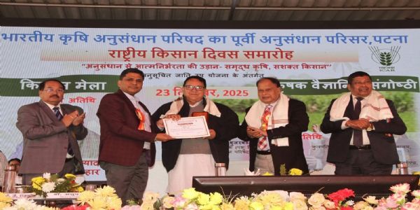 पूर्वी चंपारण,31 दिसंबर (हि.स.)। मछली पालन के क्षेत्र में बेहतर करने के लिए पूरे देश में रोल मॉडल बने पूर्वी चंपारण जिले के संग्रामपुर प्रखंड स्थित बरियरिया गांव निवासी यतिंद्र कुमार कश्यप को भारतीय कृषि अनुसंधान परिषद के पूर्वी परिसर पटना द्वारा आयोजित दो दिवसीय राष्ट्रीय किसान दिवस समारोह में मछली पालन के क्षेत्र में किसानों को प्रोत्साहित करने के साथ जल जमाव वालो इलाको में मछली पालन कर बेहतर लाभ कमाने के लिए उत्प्रेरित करने को लेकर प्रशस्ति पत्र देकर सम्मानित किया हैं।