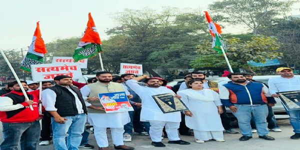 में युवा कांग्रेस की ओर से भाजपा के स्थानीय कार्यालय के बाहर प्रदर्शन किया गया।