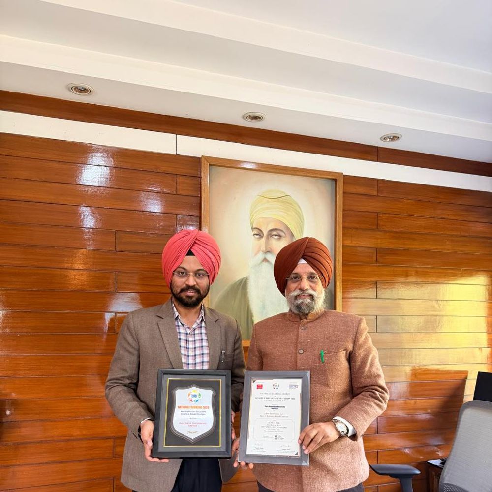 अमृतसर| गुरु नानक देव यूनिवर्सिटी (जीएनडीयू) के म्यास जीएनडीयू खेल विज्ञान एवं चिकित्सा विभाग को देश का प्रतिष्ठित ‘राष्ट्रीय सर्वश्रेष्ठ खेल विज्ञान आधारित पाठ्यक्रम संस्थान पुरस्कार’ प्रदान किया गया है। यह सम्मान सीएसआरआई नई दिल्ली द्वारा इंडिया इंटरनेशनल सेंटर नई दिल्ली में आयोजित एक भव्य समारोह के दौरान दिया गया। इस उपलब्धि पर प्रसन्नता व्यक्त करते हुए कुलपति प्रो. डॉ. कर्मजीत सिंह ने इसे यूनिवर्सिटी के लिए गर्व का क्षण बताया। उन्होंने कहा कि गुरु नानक देव यूनिवर्सिटी की अत्याधुनिक शोध प्रयोगशालाएं, उन्नत खेल पुनर्वास सुविधाएं तथा राष्ट्रीय खेल संस्थानों के साथ मजबूत सहयोग इस उपलब्धि के प्रमुख आधार हैं। यह पुरस्कार औपचारिक रूप से म्यास-जीएनडीयू खेल विज्ञान एवं चिकित्सा विभाग के अध्यक्ष डॉ. अमरिंदर सिंह ने प्राप्त किया। पुरस्कार प्रदान करने वालों में दिल्ली हाईकोर्ट के माननीय न्यायमूर्ति अनिश दयाल भारत सरकार के युवा कार्य एवं खेल मंत्रालय के पूर्व सचिव अजीत कुमार शरण, भारतीय ओलंपिक संघ एवं अंतरराष्ट्रीय हॉकी महासंघ के पूर्व अध्यक्ष डॉ. नरेंद्र ध्रुव बत्रा तथा सीएसआरआई के अध्यक्ष कर्नल राजपाल सिंह शामिल थे। डॉ. अमरिंदर सिंह ने बताया कि विभाग ने हमेशा वैज्ञानिक ज्ञान को व्यावहारिक अनुप्रयोग से जोड़ने पर विशेष ध्यान दिया है। संकाय सदस्यों ने विश्वविद्यालय के कुलपति प्रो. डॉ. करमजीत सिंह के दूरदर्शी नेतृत्व की सराहना की।