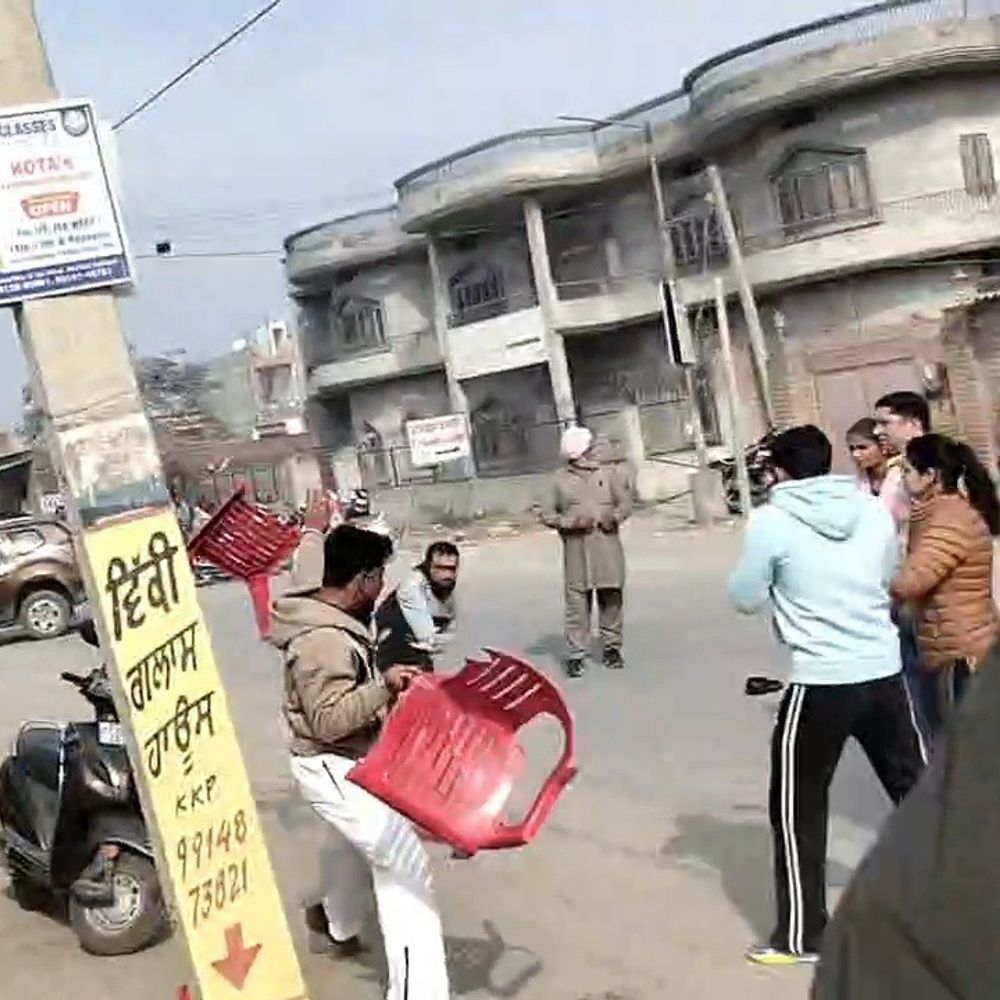 फरीदकोट में धरना दे रहे लोगों-राहगीरों में चली कुर्सियां:डंडा लेकर दौड़े, मोबाइल टॉवर के विरोध में प्रदर्शन, युवकों से हुई कहासुनी