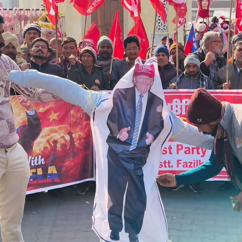 अमेरिका के राष्ट्रपति डोनाल्ड ट्रंप द्वारा पिछले दिन लैटिन अमेरिका की वेनेजुएला देश में तेल के भंडारों पर कब्जा करने के लिए हमला किया गया था। अमेरिका द्वारा वहां के राष्ट्रपति निकोलस मादुरो और उनकी पत्नी का अपहरण कर उन्हें अमेरिका लगा लाया गया। अमेरिका के इस गुंडागर्दी के खिलाफ दुनिया भर में विरोध किया जा रहा है। यह आरोप फाजिल्का में प्रदर्शन दौरान CPI और ट्रेड यूनियन के पदाधिकारी ने लगाए है। इस दौरान उन्होंने अमेरिकी राष्ट्रपति डोनाल्ड ट्रंप का पुतला फूंक प्रदर्शन किया। इस अवसर पर बोलते हुए सीपीआई ब्लॉक फाजिल्का के सचिव कामरेड शुभेग सिंह ने कहा कि ट्रंप प्रशासन साम्राज्यवादी लोक विरोधी नीतियों को पूरे दुनिया में लागू करना चाहता है। जिसको किसी भी कीमत पर बर्दाश्त नहीं किया जाएगा। उन्होंने कहा कि अपनी प्रभु सत्ता भरपूर वेनेजुएला देश अपने ढंग से बढ़िया प्रशासन चला रहा है। उस पर बिना वजह तेल जखीरों पर कब्जा करने की नीयत से वहां के राष्ट्रपति और उसकी पत्नी को अपहरण करके लेकर जाना किसी भी स्तर पर अंतरराष्ट्रीय कानून के हित में नहीं आता। उन्होंने कहा कि समाजवादी ताकतें ट्रंप के घिनौने कारनामे की सख्त निंदा कर रही है। इस मौके पर ट्रंप का फाजिल्का के चौक घंटाघर में पुतला फूंका गया और अमेरिकी साम्राज्यवाद के खिलाफ जमकर नारेबाजी की गई। यूनियन के पदाधिकारीयों ने अंतरराष्ट्रीय स्तर पर बने प्लेटफार्म के जरिए मांग करते हुए कहा कि वेनेजुएला देश के राष्ट्रपति और उसकी पत्नी को बिना किसी शर्त तुरंत रिहा किया जाए ।