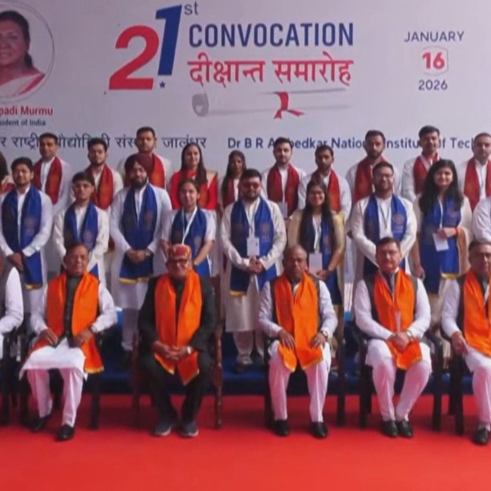 भारत की राष्ट्रपति द्रौपदी मुर्मू का आज (शुक्रवार) का जालंधर दौरा खराब मौसम की वजह से रद्द हो गया है। राष्ट्रपति यहां डॉ. बीआर अंबेडकर नेशनल इंस्टीट्यूट ऑफ टेक्नोलॉजी यानी NIT के 21वें दीक्षांत समारोह में बतौर मुख्य अतिथि शिरकत करने वाली थीं। राष्ट्रपति के कार्यक्रम में ना पहुंचने के कारण अब पंजाब के राज्यपाल गुलाब चंद कटारिया बतौर मुख्य अतिथि डॉ. बीआर अंबेडकर नेशनल इंस्टीट्यूट ऑफ टेक्नोलॉजी पहुंचे। राज्यपाल ने मेधावी छात्रों को सम्मानित किया और डिग्रियां प्रदान की। 1452 से अधिक विद्यार्थियों को मिलेगी डिग्री दीक्षांत समारोह में संस्थान के कुल 1452 विद्यार्थियों को डिग्री प्रदान की जाएंगी। इसमें स्नातक (B.Tech), स्नातकोत्तर (M.Tech, MBA, M.Sc) और PhD के छात्र शामिल हैं। यह कार्यक्रम विशेष रूप से उन 31 विद्यार्थियों के लिए यह भावुक क्षण होने वाला था, जिन्हें उनके अच्छे प्रदर्शन के लिए राष्ट्रपति अपने हाथों से गोल्ड मेडल करने वाली थीं। NIT प्रशासन का कहना है कि राष्ट्रपति का आगमन युवाओं को तकनीकी नवाचार और राष्ट्र निर्माण के लिए प्रेरित करने वाला था। सुरक्षा के कड़े पहरे, 'नो फ्लाइंग जोन' बना शहर राष्ट्रपति के दौरे को लेकर जालंधर जिला प्रशासन और पुलिस ने अभूतपूर्व सुरक्षा व्यवस्था की थी। अतिरिक्त जिला मजिस्ट्रेट के आदेश पर 14 से 16 जनवरी तक जिले को 'नो फ्लाइंग जोन' घोषित किया गया है। इसके तहत ड्रोन, निजी हेलिकॉप्टर, रिमोट कंट्रोल एयरक्राफ्ट और हॉट एयर बैलून उड़ाने पर पूरी तरह से प्रतिबंध है। सुरक्षा एजेंसियों ने कार्यक्रम स्थल को अपने कब्जे में लेकर सुरक्षा घेरा तैयार किया था, वहीं ट्रैफिक पुलिस ने भी रूट डाइवर्जन किया था ताकि आम लोगों को परेशानी न हो।