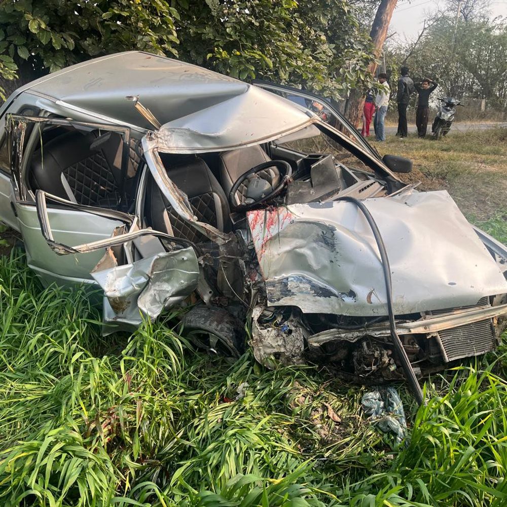 मानसा में पेड़ से टकराई कार, दो की मौत:मंडेर से लौटते वक्त कलीपुर गांव में हादसा, एक यूपी के शामली का रहने वाला