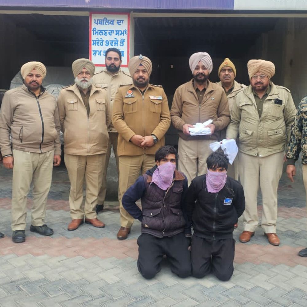 तरनतारन में हेरोइन के साथ दो गिरफ्तार:पाकिस्तानी तस्करों से संबंध, ड्रोन से मंगवाते थे खेप, हथियार और मेग्जीन बरामद