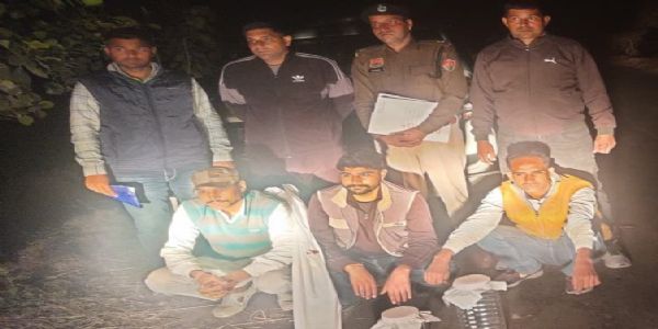 पुलिस अधीक्षक ने बताया कि सूचना के आधार पर नारकोटिक्स सेल की पुलिस टीम गांव ढाबा से बुर्ज भंगू रोड की तरफ जा रही थी। इसी दौरान गांव बुर्ज भंगू की तरफ से ऑल्टो कार आती दिखाई दी जो कि पुलिस टीम को देखकर रूक गई और चालक ने वापस मोड़ कर भागने की कोशिश की। पुलिस ने कार को शक के आधार पर रोक लिया और तलाशी ली तो कार सवार राजीव कुमार के कब्जे से 32 बोर का अवैध पिस्तौल व दो जिंदा कारतूस, सोनू के कब्जे से 32 बोर का अवैध पिस्तौल व दो जिंदा कारतूस तथा विजय के कब्जे से छह कारतूस बरामद हुए, जबिक कार की पिछली सीट से 12 बोर की एक अवैध बंदूक व 17 जिंदा कारतूस बरामद हुए।