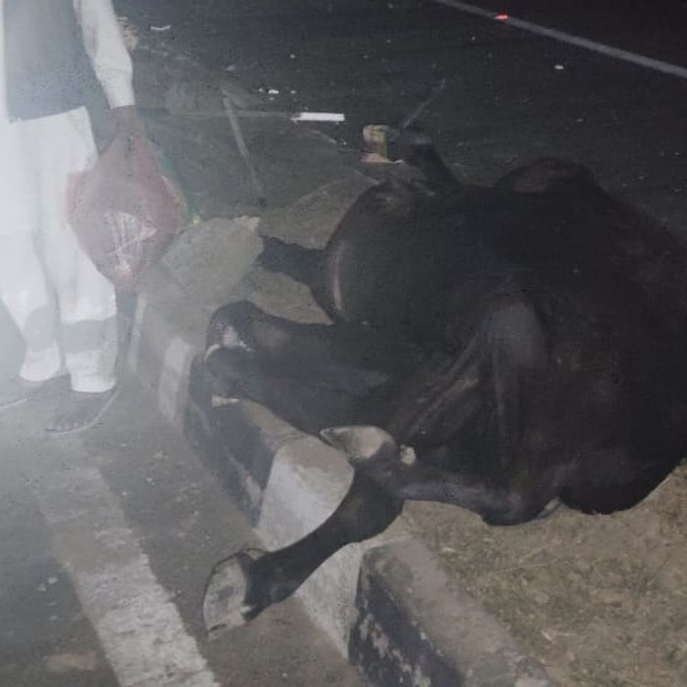 फाजिल्का में मृत पशु से टकराई कार, दो दोस्त गंभीर:शादी समारोह से अपने घर बठिंडा जा रहे थे, नहीं दिखा सड़क पर पड़ा शव