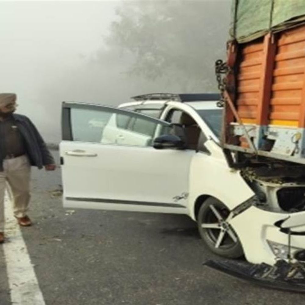 जालंधर में 3 कारें ट्रक से टकराईं:ब्यास गांव के पास धुंध में ट्रक ड्राइवर ने ब्रेक लगाए, 3 लोग घायल, आधा घंटा ट्रेफिक बाधित रहा