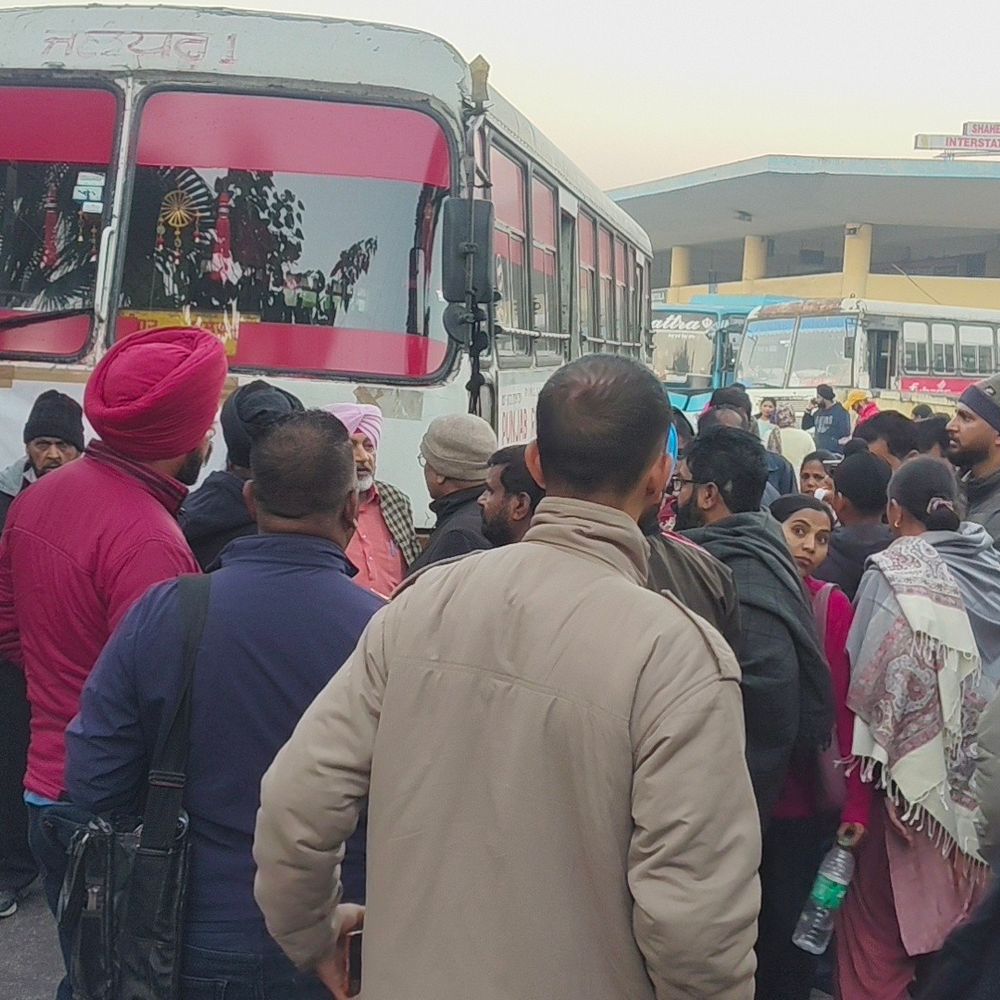 जालंधर बस स्टैंड कर दिया बंद:रोडवेज कर्मचारी धरने पर, किमी. स्कीम टेंडर रद्द न करने से नाराज, सरकारी बसें नहीं चल रहीं