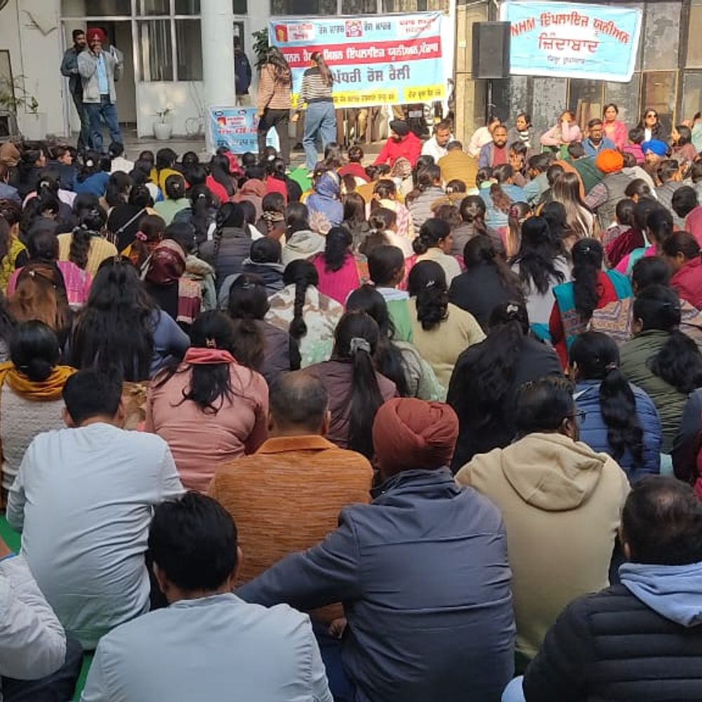 भास्कर न्यूज | जालंधर वीरवार को भी पंजाब के सभी एनएचएम कर्मचारियों की पेन डाउन स्ट्राइक चौथे दिन भी जारी रही। कर्मचारी अपनी जायज मांगों को सरकार तक पहुंचाने के लिए जालंधर से चंडीगढ़ पहुंच गए। अपनी सैलरी जारी करवाने को लेकर पंजाब के नेशनल हेल्थ मिशन कर्मचारियों ने चंडीगढ़ मिशन डायरेक्टर के ऑफिस के बाहर विरोध प्रदर्शन किया। जिससे हेल्थ सर्विस पूरी तरह से प्रभावित रही। पंजाब के सभी नेशनल हेल्थ मिशन कर्मचारियों ने डिपार्टमेंट की सभी तरह की ऑनलाइन रिपोर्टिंग, ऑफलाइन रिपोर्टिंग, ओपीडी और दूसरे डिपार्टमेंटल काम पूरी तरह से बंद कर दिए। इस मौके पर एनएचएम कर्मचारी यूनियन पंजाब के सीनियर नेता संदीप कौर बरनाला, गुलशन शर्मा फरीदकोट, डॉ. वाहिद मालेरकोटला ने कहा कि नेशनल हेल्थ मिशन (एनएचएम) के तहत काम करने वाले सभी कच्चे कर्मचारियों को पिछले दो महीन से वेतन नहीं मिलने से आर्थिक तंगी का सामना करना पड़ रहा है, वहीं विभाग और सरकार के इस रवैये के कारण सभी कर्मचारी मानसिक तनाव से गुजर रहे हैं। कर्मचारियों का वेतन जारी नहीं करके और मुख्य मांगों को नजरअंदाज करके हर फ्रंट पर सरकार नाकाम साबित हो रही है। वहीं राम सिंह कपूरथला, जसवीर सिंह तरनतारन ने कहा कि अगर सरकार और विभाग ने उनकी बकाया सैलरी तुरंत जारी नहीं की, तो आने वाले दिनों में इस संघर्ष को तेज किया जाएगा और आने वाले दिनों में मुख्यमंत्री और सेहत मंत्री का भी घेराव किया जाएगा। इस मौके पर दिनेश गर्ग पटियाला, अमरजीत सिंह फतेहगढ़ साहिब, जशन फतेहगढ़ साहिब, डॉ. सिमरपाल मोगा, जसबीर सिंह कोटिया, डॉ. पंखुड़ी जालंधर, रणजीत कौर बठिंडा आदि मौजूद रहे।