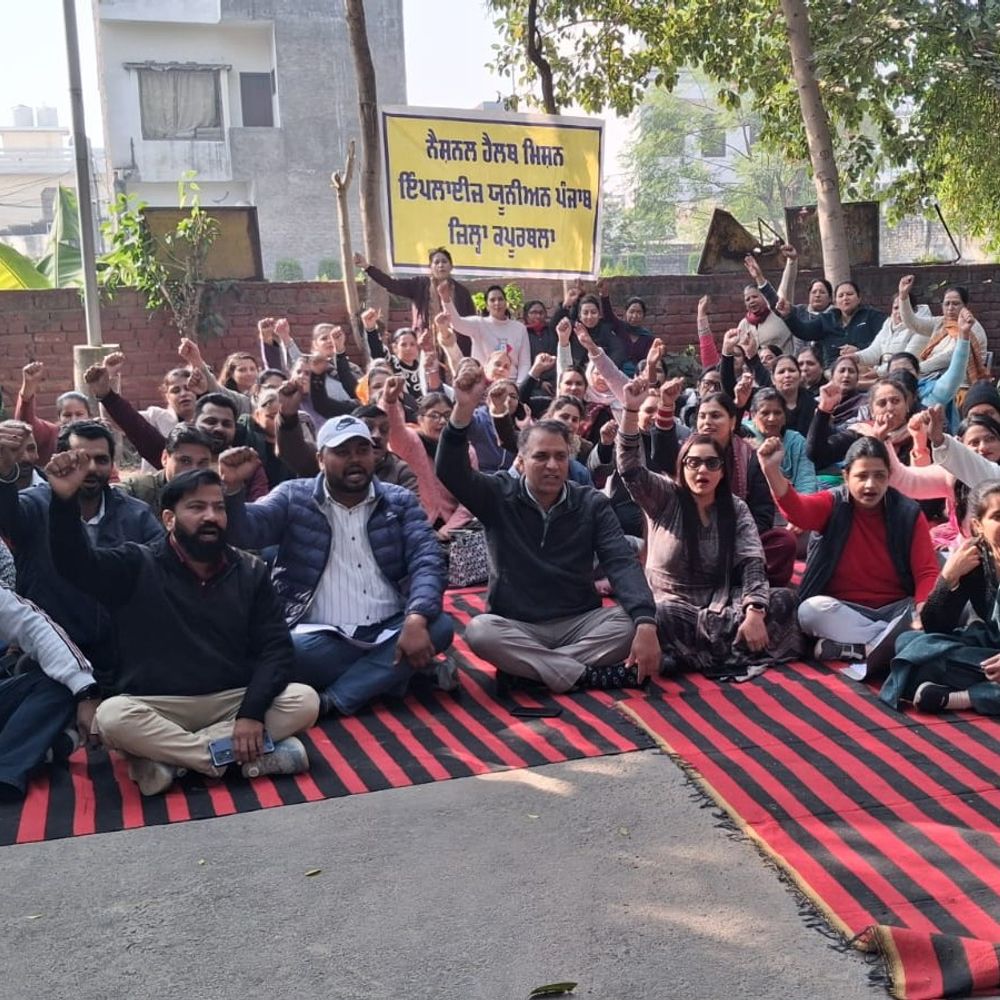 कपूरथला में NHM कर्मचारियों की हड़ताल:सैलरी जारी न होने से नाराज, सिविल सर्जन कार्यालय के बाहर नारेबाजी, 4 को घेराव की चेतावनी