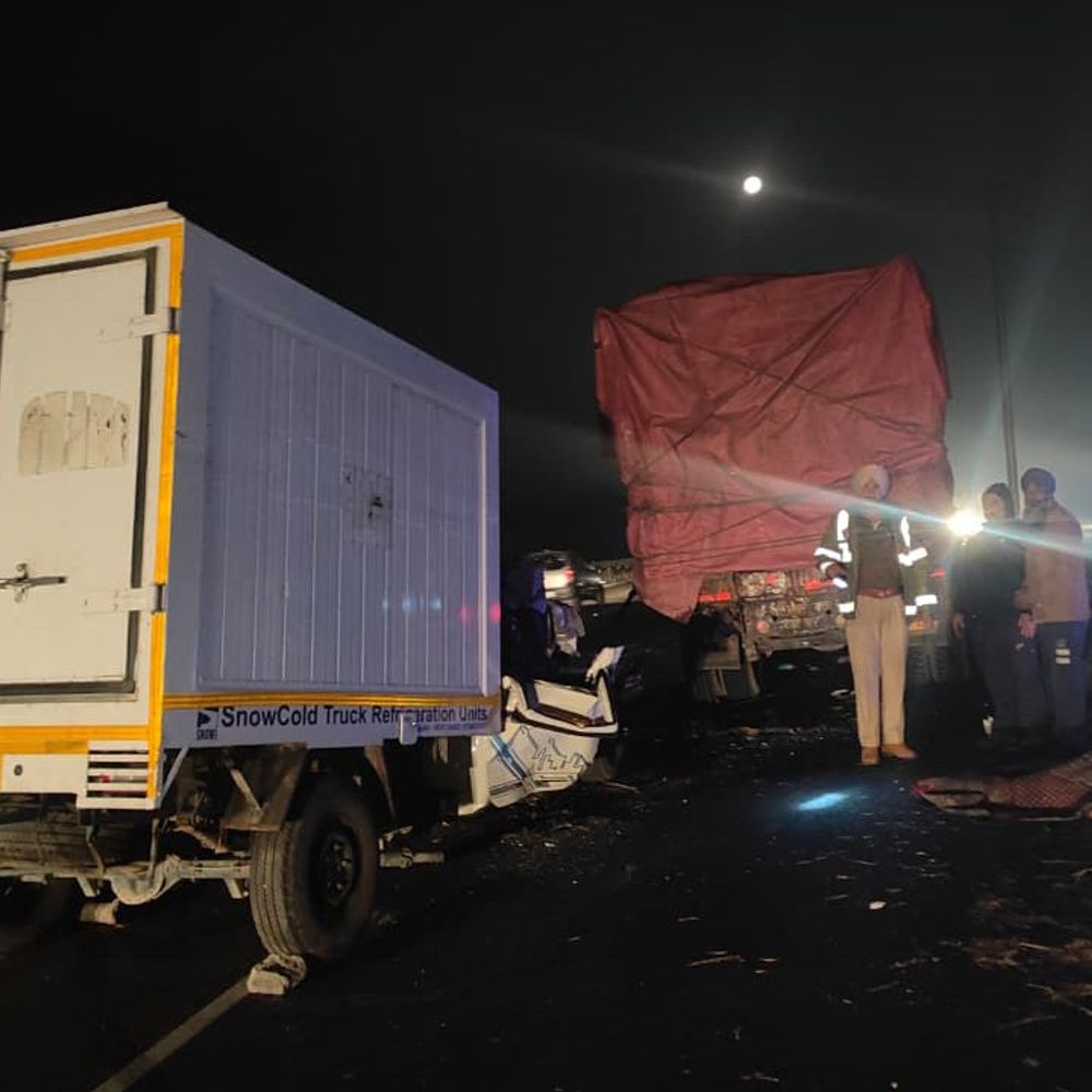 खन्ना में एक्सीडेंट में जालंधर के ड्राइवर की मौत:पिकअप ने ट्रक के पीछे से मारी टक्कर, कम विजिबिलिटी के कारण हादसे की आशंका