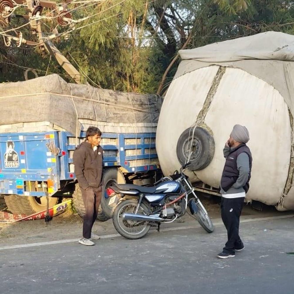 लुधियाना-बठिंडा हाईवे पर जीप-ट्रॉली की टक्कर:मुल्लांपुर दाखा में हाईटेंशन तारें टूटीं, बिजली आपूर्ति बाधित, सड़क पर ड्राइवरों ने किया ड्रामा