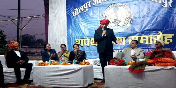 इस मौके पर जिला एवं सत्र न्यायाधीश मागो ने कहा कि बार और बेंच के बीच में बेहतर समन्वय आवश्यक है। जिससे न्यायिक कार्याें का संचालन बिना किसी परेशानी के निर्बाध रुप से संपन्न हो सके। उन्होंने कहा कि अगर कोई समस्या आती भी है,तो बार और बेंच के मध्य वार्ता तथा आपसी समझ से सभी मामलों का निपटारा किया जाएगा। धौलपुर अभिभाषक संघ के नव निर्वाचित अध्यक्ष हरिओम शर्मा ने कहा कि वह सीनियर अधिवक्ताओं का मार्गदर्शन लेकर युवाओं के साथ कंधे से कंधा मिलाकर अधिवक्ताओं के हित में काम करेंगे। अदालत परिसर में अधिवक्ताओं के सुविधाओं का विस्तार उनकी प्राथमिकता रहेगी। संचालन वरिष्ठ अधिवक्ता अतुल कुमार भार्गव ने किया। समारोह में स्थाई लोक अदालत के अध्यक्ष सुरेश प्रकाश भटट, जिला विधिक सेवा प्राधिकरण की सचिव रेखा यादव, पोस्को न्यायालय जज राजकुमार,एडीजे राकेश गोयल, एसससी एसटी न्यायालय जज नम्रता पारीक, मुख्य न्यायिक मजिस्ट्रेट ज्योति सिंह मीणा, निर्वाचन अधिकारी महेन्द्र गुर्जर,सहायक निर्वाचन अधिकारी परुषोत्तम परमार एवं चंद्रपाल सिंह, धौलपुर अभिभाषक संघ के निवर्तमान अध्यक्ष प्रशांत हुंडावाल, धौलपुर अभिभाषक संघ के अध्यक्ष हरिओम शर्मा, महासचिव अरविन्द कुमार,वरिष्ठ उपाध्यक्ष दिनेश त्यागी,उपाध्यक्ष हेमंत पचौरी,कोषाध्यक्ष विनय शर्मा,पुस्तकालय सचिव प्रशांत बघेला,संयुक्त सचिव बृजेश सिंह एवं ऑडीटर विवेक व्यास सहित अन्य अधिवक्तागण तथा न्यायिक अधिकारी मौजूद रहे।