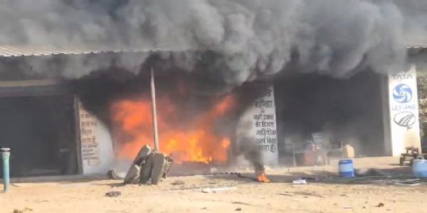 ट्रांसपोर्ट गोदाम में आग, पेट्रोलियम पदार्थ के ड्रम और टायर ने पकड़ी आग, तीन झुलसे