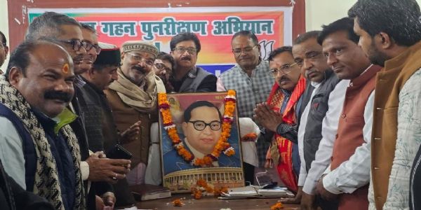 भारत रत्न बाबा साहेब डॉ भीमराव अंबेडकर की 69वीं पुण्यतिथि के अवसर पर केशव नगर स्थित भाजपा दक्षिण कार्यालय में आयोजित संगोष्ठी में मुख्य अतिथि क्षेत्रीय अध्यक्ष प्रकाश पाल एवं जिलाध्यक्ष शिवराम सिंह ने डॉ अंबेडकर के चित्र पर माल्यार्पण कर श्रद्धांजलि अर्पित की।