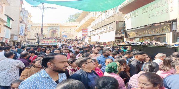 राजसमंद, 28 दिसंबर (हि.स.)। सर्दी की छुट्टियों के चलते विश्व प्रसिद्ध प्रभु श्रीनाथजी मंदिर, नाथद्वारा में श्रद्धालुओं का अभूतपूर्व सैलाब उमड़ पड़ा है। पिछले चार दिनों से लगातार बढ़ रही भीड़ ने रविवार को कई वर्षों के रिकॉर्ड तोड़ दिए। लंबे समय बाद ऐसा नजारा देखने को मिला, जब सर्दी की छुट्टियों के दौरान दर्शनार्थियों की संख्या ने पुराने आंकड़ों को पीछे छोड़ दिया।