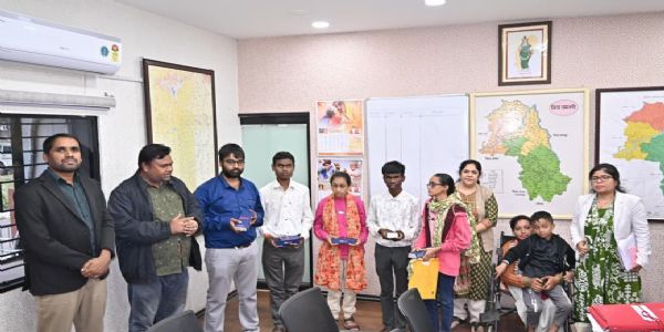 कलेक्टर ने छह दिव्यांग विद्यार्थियों को दिए स्मार्टफोन और ब्लूटूथ कीबोर्ड